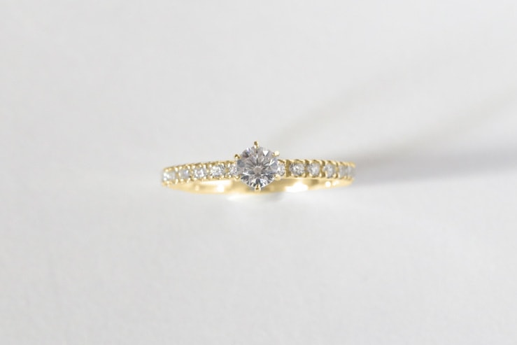 ハーフエタニティエンゲージリング 素材 Pt900・K18YG・PG・WG 中石 ダイヤモンド約0.25ct 1石 脇石 ダイヤモンド約0.2ct 14石 サイズ ウデの幅 約2.0mm 石のサイズ 約4.0mm 中央のダイヤモンドをハーフエタニティのウデで支えた華やかな婚約指輪です。 注文を受けてから制作致しますので1ヶ月半ほどお時間を頂きます。